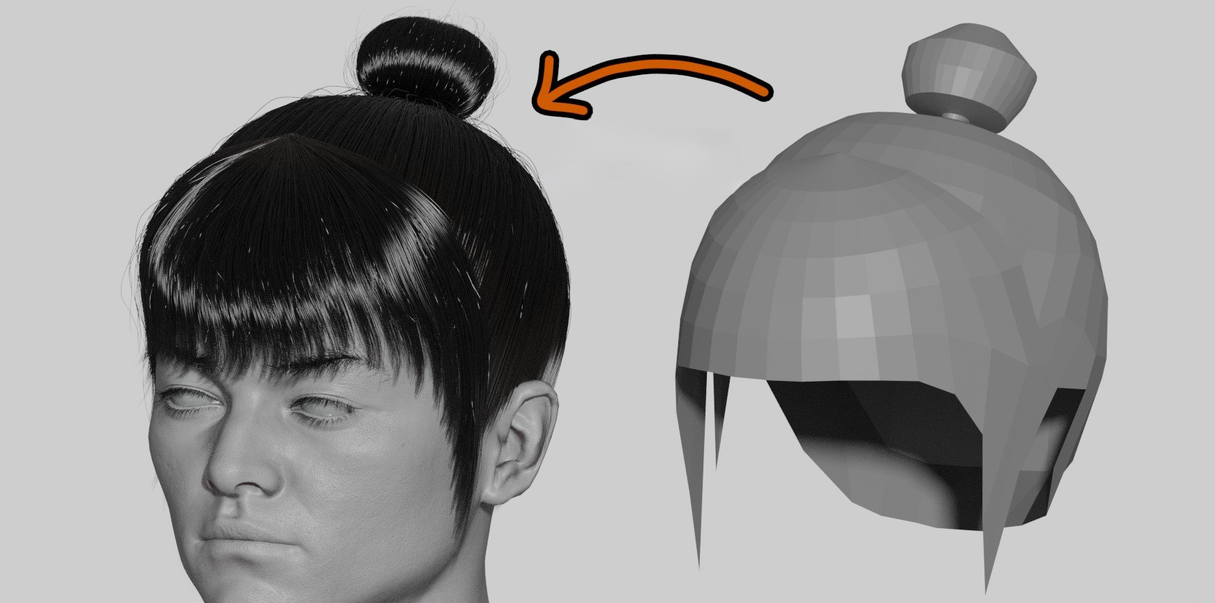 • 2)Mesh to Hair : Convert sculpted hairstyle meshes into dynamic hair strands while preserving shape fidelity.